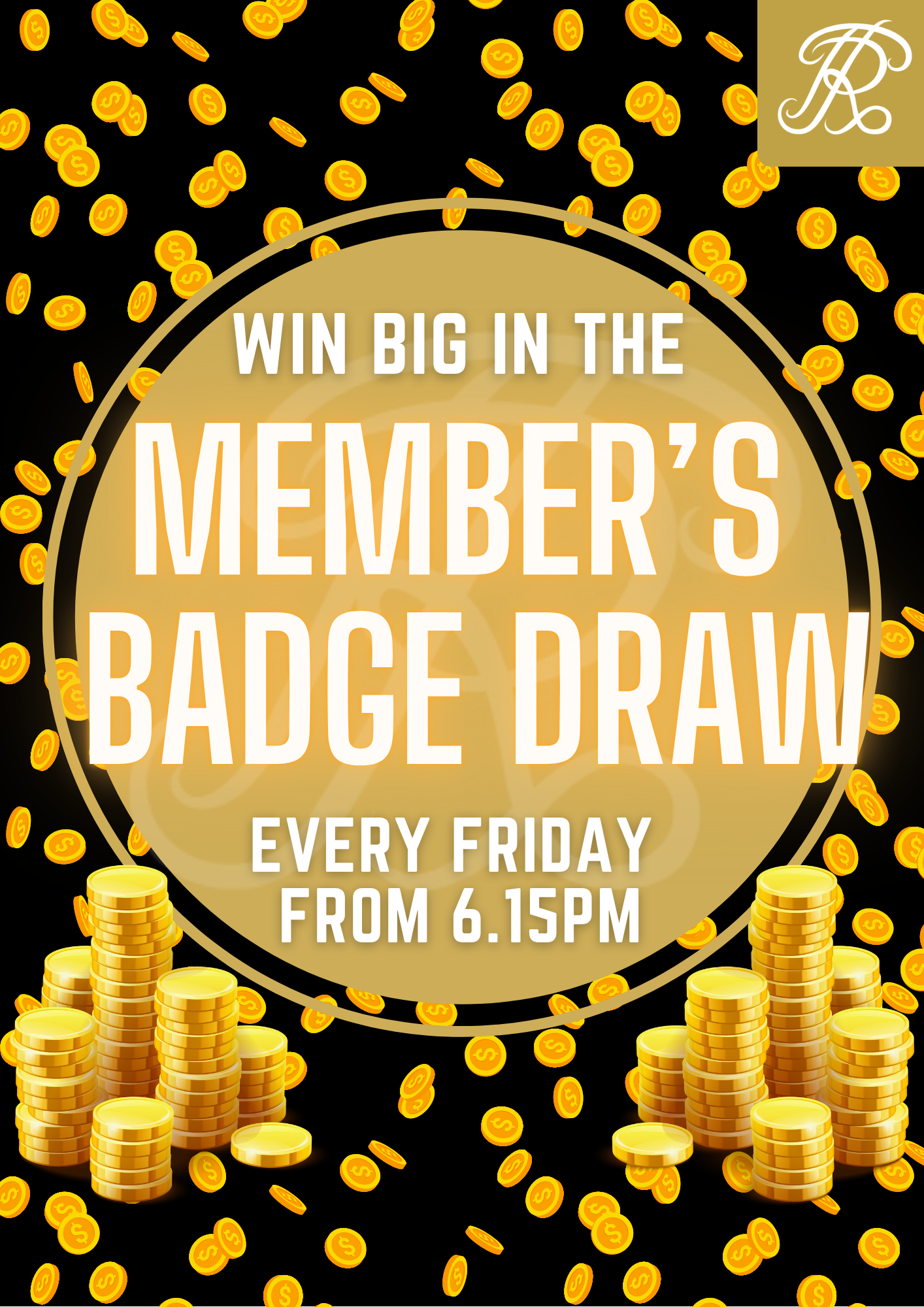 Will we see you for our 💰💰2000 MEMBERS ONLY BADGE DRAW? 💰💰We will be drawing numbers from 6:30pm. Register at reception before 6:30pm to go into our consolation draw - if no winner is called for the $2000, four lucky members will win $500 each! Terms and Conditions Apply. Excludes members under 18 years of age